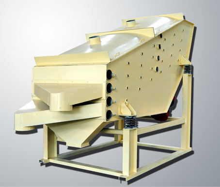 當篩機起動后,呈對稱布置的兩臺相同型號和規格的振動電機或激振器作同步反向運轉,其產生的激振力通過傳振體—電機或激振器底座傳遞到整個振動體—篩箱上,使篩箱帶動篩面作周期性振動,從而使篩面上的物料隨篩箱一同作定向跳躍式運動,其間,小于篩面孔徑的物料通過篩孔落到下層,成為篩下物,大于篩面孔徑的物料經連續跳躍運動后從排料口排出,完成篩分作業。